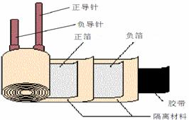 其工作机理为:正箔的金属铝基体为电容器正极,导电聚合物层为电容器负极,正箔上的氧化铝膜为工作电介质;当正、负导针分别与电源的正、负极接通以后,电容器的正极带正电,负极带负电,可以储存电荷。